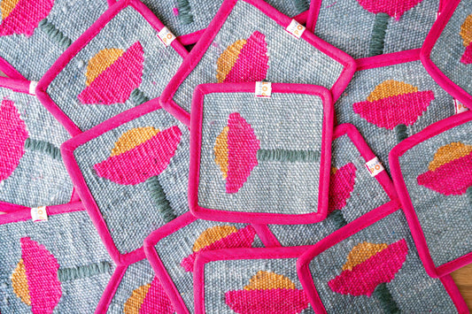 Her biri kadın zanaatkârlar tarafından üretilen bu özel parçalar, renkli desenleriyle enerjik, dokularıyla doğal ve samimi bir sıcaklık hissi verir. Dayanıklı yapısı sayesinde uzun ömürlü, el yapımı bardak altlıkları hem işlevsel hem dekoratif birer tamamlayıcıdır.