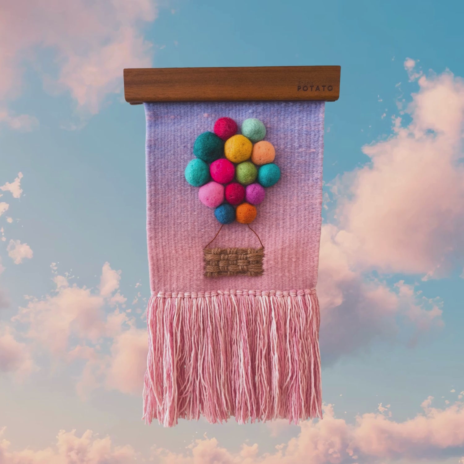 Bu el dokuması duvar dekoru, özel bir dokuma tezgahı üzerinde tasarlanmış ve üretilmiştir. Dokuma, fotoğrafta görüldüğü gibi ürüne özel bir ahşap asma tahtası ile gönderilmektedir ve arkasında askı deliği bulunur.